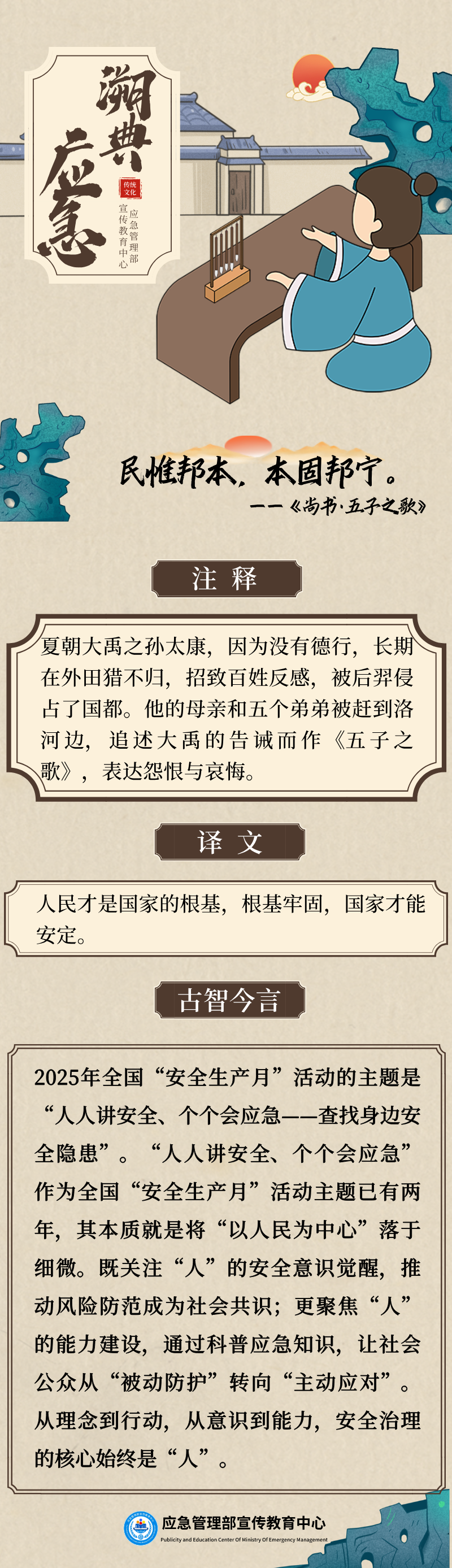 每周與您分享和安全月主題有關的中國古代應急管理智慧,古為今用、推陳出新,在創造性轉化和創新性發展中賡續中華文脈,本周,我們從“民惟邦本”說起。