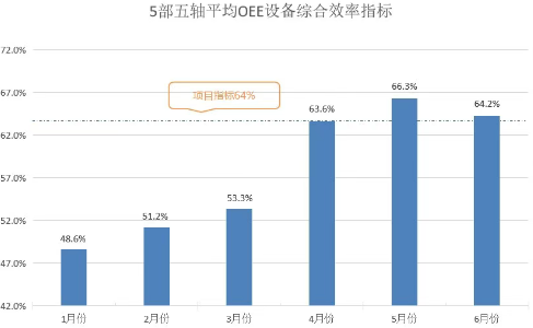 經(jīng)過改善課題小組6個月的專項攻關(guān),五軸加工中心OEE提升實現(xiàn)三級跨越。核心指標(biāo)突破,OEE由48%提升至64%,年度釋放產(chǎn)能價值約320萬;過程浪費銳減,非增值時間占比從52%降至36%;組織動能迸發(fā),員工提交改善提案20項,采納19項,員工改善熱情提升;工作機(jī)制初步建立,未來可在其他加工生產(chǎn)設(shè)備上推廣應(yīng)用,推動加工效率的長效躍升。