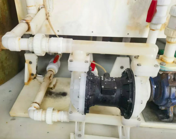 此前,分公司稀硫酸配制工藝過(guò)程中使用美國(guó)進(jìn)口氣動(dòng)隔膜泵,但膜片和鋁碗在長(zhǎng)期運(yùn)行中頻繁出現(xiàn)貼合部位松動(dòng)漏酸問(wèn)題, 2023年因漏酸問(wèn)題更換了6臺(tái)進(jìn)口泵,維修費(fèi)用高達(dá)8.1萬(wàn)元,不僅增加了生產(chǎn)成本,還影響生產(chǎn)的連續(xù)性。