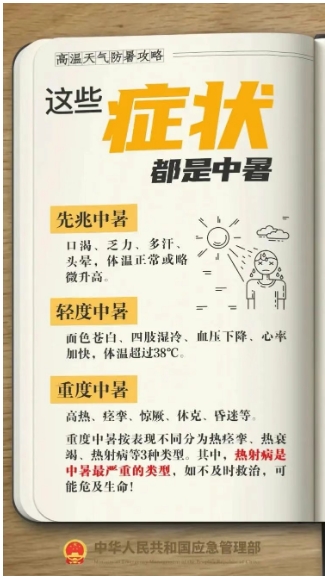 中暑是指人體在高溫、高濕度、不透風(fēng)環(huán)境下,由于水和電解質(zhì)丟失過(guò)多、散熱功能障礙,導(dǎo)致機(jī)體核心溫度過(guò)高,引起的以中樞神經(jīng)系統(tǒng)和心血管功能障礙為主要表現(xiàn)的熱損傷性疾病。